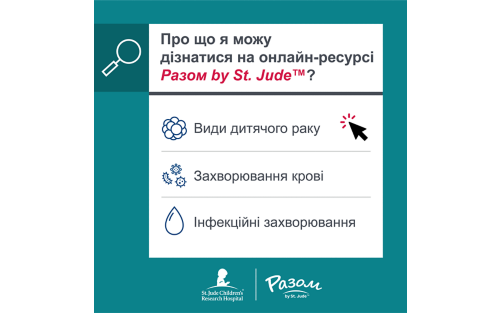 Онлайн‑ресурс Разом by St. Jude™ тепер містить інформацію про порушення крові, інфекційні захворювання та дитячий рак. Дізнайтеся більше про розширення сайту.